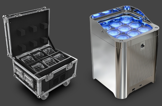 Set van 6 outdoor batterijspots RGBWW, chrome, incl flightcase